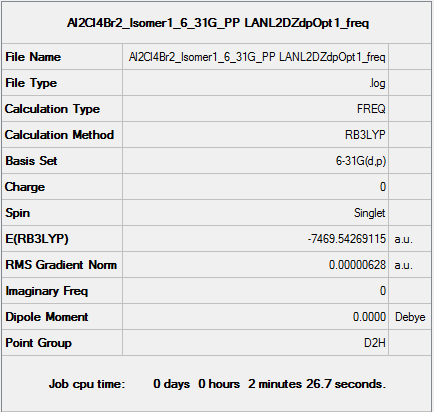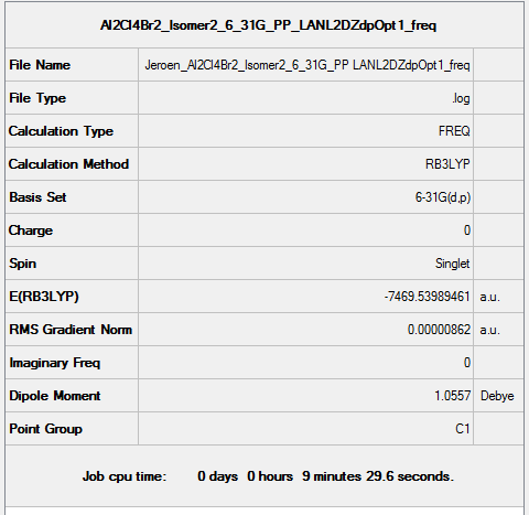 Jeroen Al2Cl4Br2 Isomer2 6 31G PP LANL2DZdpOpt1 freq Summary.PNG