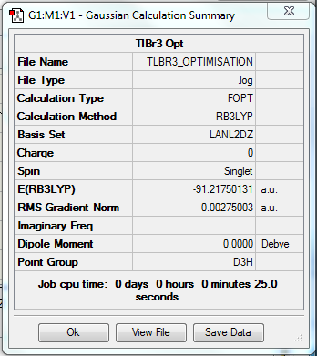 | 21:56, 30 November 2011 | TlBr3 optimisationmtr09.mol (file) | 434 bytes | Energy parameter graphs and IR spectra and MOL file of TlBr3 | 1 | |