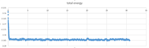 TASK: Use the manual page to find out the importance of the three numbers 100 1000 100000. How often will values of the temperature, etc., be sampled for the average? How many measurements contribute to the average? Looking to the following line, how much time will you simulate?