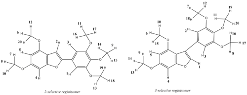 The 2-selective and 3-selective benzo[b]furan regioisomers were constructed using ChemBio3D and were subjected to an initial MM2 optimisation. The results are shown in the table below: