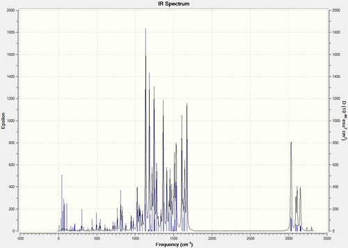 The IR spectrum of each molecule was simulated using the vibrational log file and compared to the IR frequencies recorded in literature.