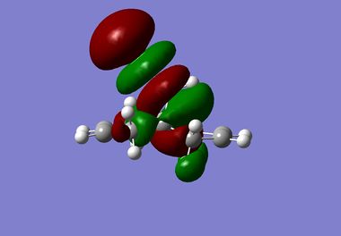 As an alternative the AM1 method was used and this produced far more satisfactory results and agreed well with the orbitals produced by purely quantum mechanical calculations in GaussView 5.0. These can be seen below.