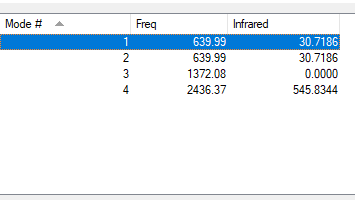 Have you added a table to your wiki listing the wavenumber and intensity of each vibration?