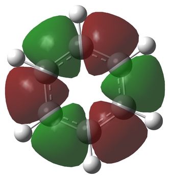 However, MO calculations show that this is not the sole bonding orbital and that there are many MOs of similar energy that have sigma character. This suggests that the view that aromaticity is defined by solely by orthogonal pz orbitals is flawed and that the real picture is far more complex. An example is included below, in which the MO has sigma character, but still represents a bonding orbital in which the electrons are delocalised (the nodes are atom-based and the MO is cyclic). This MO is formed from p-orbitals in the plane of the ring showing an effect known as σ-aromaticity. Thus, clearly, MO theory has shown that the Huckel view of aromaticity is not complete.