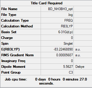 Frequency analysis file:BD_NH3BH3_FREQ.LOG