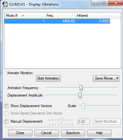 Item Value Threshold Converged? Maximum Force 0.000004 0.000450 YES RMS Force 0.000004 0.000300 YES Maximum Displacement 0.000070 0.001800 YES RMS Displacement 0.000033 0.001200 YES Predicted change in Energy=-5.785205D-10