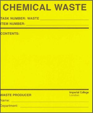 - Label all the containers with yellow labels – indicating item number and batch waste number.