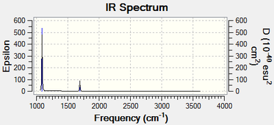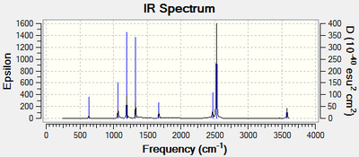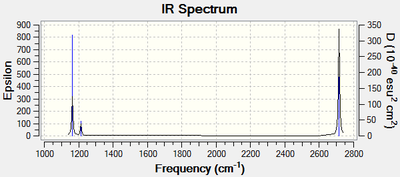 Smf115 (talk) 17:49, 23 May 2018 (BST)Great explaination to why only 3 peaks are seen and assignment of the vibraitonal modes. The symmetries assigned weren't correct though suggesting that the molecule was of the wrong point group.