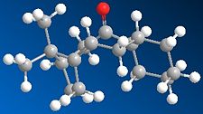 In this exercise the example of atropisomerism in the synthetic intermediates enrounte to Taxol is investigated using MM2 force field minimisations to optimise the structures 9 and 10, in which the carbonyl group points upward and downward respectively (Fig. 1.3.1). Atropisomerism arises in structures of which of general free rotation that are restricted and/or contrained in one of a number of stable configurations that do not necessarily interchange at room temperature[4]. This observation shows that stable isomers do not have to be equally thermodynamically stable to remain in the conformation they are in, since it only needs a significant amount of kinetic barrier to interconversion between them. One of the major factor behind the rigidity of these atropisomers is the presence of the bridgehead alkene, which contributes a sufficient degree of inflexibility to free rotation preventing the molecule to deform interchangebly. The presence of atropisomers makes the sythetic rounte to Taxol nonetheless problematic, due to the difficulty in achieving specific stereoselectivity when reacting with the carbonyl group. Here the energies of the minimised isomers are studied and used to determine which atropisomer is the dominant of the pair and will thence leads to the Taxol synthesis accordingly.
