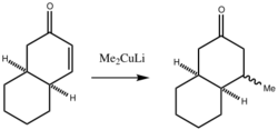 The reaction on the right is taken from a lecture problem sheet on organic synthesis. Part of the problem involves assigning the stereochemistry of the methyl group.
