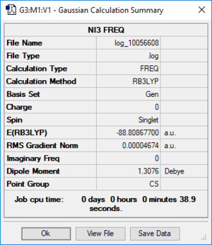 Ng611 (talk) 11:11, 15 May 2019 (BST) You need to include ALL items (summary, low frequencies, log file, convergence table, jmol) for EVERY calculation.