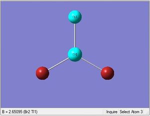 Geometry optimisation was performed using the LANL2DZ basis set, which stands for Los Alamos National Laboratory 2 double zeta, used for transition metals such as Thallium in this case. This demonstrates the need for computational chemists to discern between molecules under investigation and apply correctly a method and basis set suited to the task. Also, the structure was restricted to D3h prior to running the optimisation.