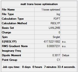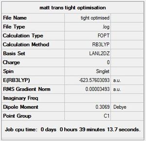 - LANL2DZ - for tighter optimisation applied to the already loosely optimised complex, using a higher level basis set.