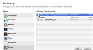 Currently, some lecture course materials are being offered in eBook format. The standard used is the epub and this is supported on a variety of eBook readers. The combination tested thus far is the Stanza ebook reader as available on Apple iPhone/iPod/iPad devices. There are four ways to install an ebook into this environment.