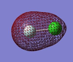 Below is an interactive ball and stick model of the Chlorine molecule allowing you to visualise the molecule and also explore the symmetry exhibited by the molecule.