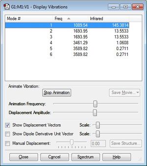 1. We expect to see 6 modes of vibration according to the 3N-6 rule.