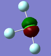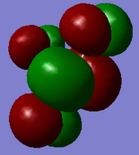 In ClF3, 22 molecular orbitals are occupied. The following are five of the various kinds of orbital interactions. It is interesting to note that more of the 22 MOs show bonding interactions between the Cl and axial Fs than between the Cl and the equatorial F, despite the fact that the axial Cl-F bonds are longer than the equatorial Cl-F bond. It is also interesting that none of the MOs obviously correspond to lone valence pairs on the Cl atom, as would be predicted by VSEPR This would suggest that whilst VSEPR is a useful tool for predicting molecule structures, it does not explain the actual electronic structure of the molecule.