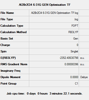 Al2Br2Cl4_6-31G_Gen_Optimisation_Summary.png (372 × 420 pixels, file size: 14 KB, MIME type: image/png)
