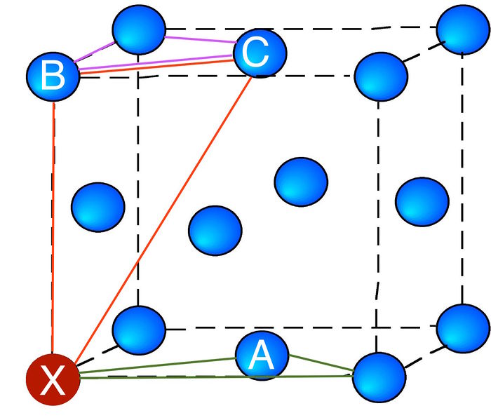 FCC lattice with neighbors marked. This file was edited. the original can be found here: http://archive.cnx.org/resources/3da746297d668a82f8498f09f805fecd55db1f79/graphics21.jpg (accessed Feb 8th 2016)