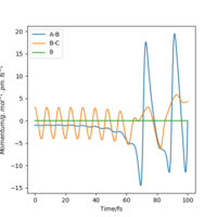 By examining six values of p2, in which the result is shown in Table 6., it can be concluded that whether a reaction will occur does not depend on the magnitude of kinetic energy It does to an extent. Pu12 (talk) 21:40, 11 June 2020 (BST) . The reaction is unlikely to happen at either small or large absolute values of p2. From momenta vs Time graphs above, it can be seen that the energy from reactants turn into H-F vibrational energy. Magnitude of vibration is crucial in successful reaction. If momentum is too small, two species cannot collide at all, while extraneous momentum result in the re-formation of reactants.