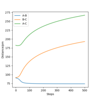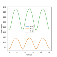 To get more precise result, p1 and p2 are set to 0.0 g.mol-1.pm.fs-1. Internuclear distances is adjusted around 90 pm (Fig 3.), and the result indicate that rts = 90.8 pm where there is no molecular vibration.