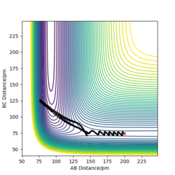 after motion started. The bond distance at the time of transition state is about 90 pm.