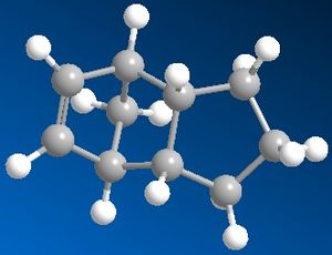Cyclopentadiene[1] dimerises at room temperature via a Diels-Alder mechanism to give dicyclopentadiene(right). The endo-dimer is produced exclusively over the exo-dimer. The reasons for this were investigated by minimising the energy of the conformations using the Allinger MM2 molecular mechanics model feature in ChemBio3D Ultra and comparing the results(Table 1).