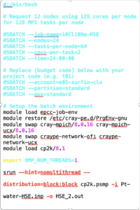 - You will be using CP2K/8.1 version, the latest version of CP2K. Check the CP2K website for some keywords’ changes (Sample script 1).