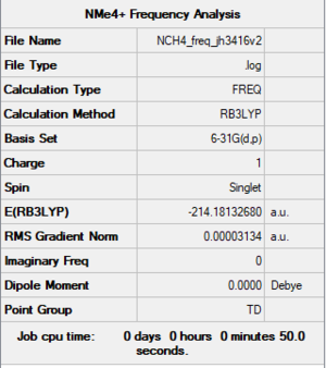 The Molecular Orbitals for [N(CH3)4]+ were then computed. Of these, three occupied MO's were analysed further and a corresponding LCAO MO depiction was formed.