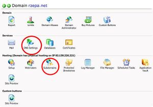 - A list of management buttons can be seen, which should include one labelled DNS Settings and one labelled Subdomains.