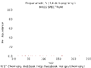 Below are spectra of propanil. The first is an IR spectrum of propanil in its gas phase. The second is a mass spectrum of propanil. You can clearly see the parent molecular ion peak is positioned close to the recorded molecular mass of propanil - 218.08amu. There are two chlorine atoms in this compound, and peaks due to the different isotopes of chlorine, namely Cl35 and Cl37, are responsible for the lack of a clear single parent molecular ion peak. The recorded molecular mass of propanil takes into the account the differing masses of the 2 isotopes of chlorine and their relative proportions (approximately 75% 35Cl and 25% 37Cl).
