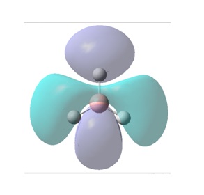 A copy of the optimised BH3 structure from earlier was made, and this copy was used run a "frequency" calculation. The additional key words "pop=(full,NBO)" were added to request a full analysis of the electron density and MOs, which will be needed later.
