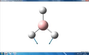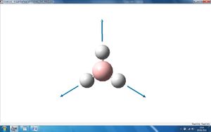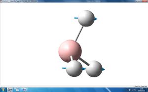 A molecule of BH3 was drawn into Gaussview, in a trigonal planar shape. Each one of the B-H bonds were set to 1.5 (angstrom) and the molecule was now ready to undergo an energy optimisation calculation.