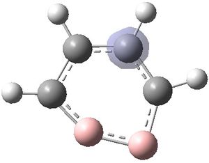 The bond lengths show that the B-B bond prefers to be longer than the rest of the bonds in the ring. This distortion may also have caused the B8-C4 bond to become much longer than the others.