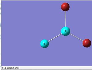 After the optimisation was carried out, it was found that the optimised Tl-Br bond distance was 2.65 (angstrom) for all three bonds, and the the optimised Br-Tl-Br bond angle was 120.0(degrees) for all three bond angles.