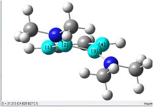 The C-B-B-C dihedral angle was found to be 31.2 degrees, as shown.