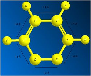 The molfile of this optimised structure was saved and opened up and viewed in ChemBio3D, in order to visualise all the bond lengths.