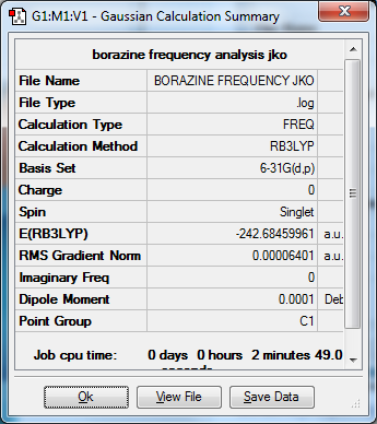 Ng611 (talk) 20:17, 15 May 2018 (BST) Good analysis! Adding the intensities of the IR modes to your table would have improved this section further.