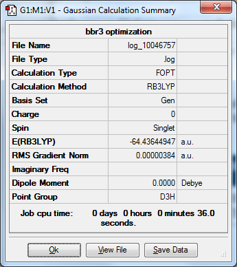 Item Value Threshold Converged? Maximum Force 0.000114 0.000450 YES RMS Force 0.000061 0.000300 YES Maximum Displacement 0.000639 0.001800 YES RMS Displacement 0.000365 0.001200 YES
