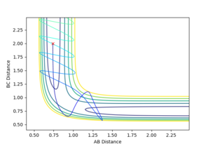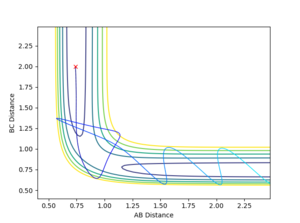 Mm10114 (talk) 20:13, 14 May 2018 (BST) The analysis of the two examples is overall good. However, are you sure using such extreme examples was the best choice here? Especially in the first one it is hard to tell what is happening and you cross very far from the previously estimated transition state. How would you relate your findings to the Polanyi's rules? Especially, the relation between the position of the transition state in respect to the reactants and the resulting requirements for the vibrational/translational energy in order for the reaction to occur?