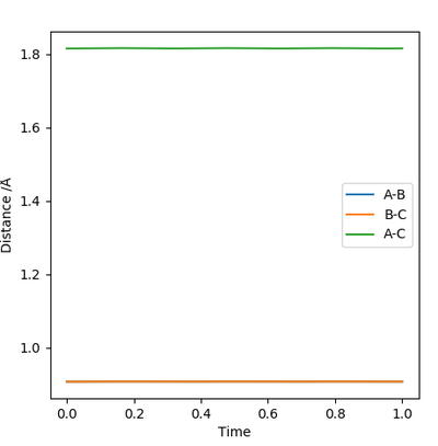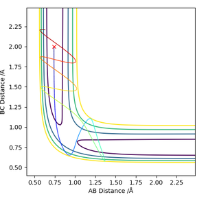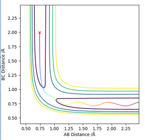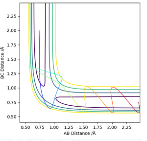 Due to the exothermic nature of the reaction F + H2 → HF + H, this suggests that the efficiency of the reaction depends more on the translational energy. The H-F momentum represents the translational energy while the H-H momentum represents the vibrational energy. Hence it its predicted that increasing the H-F momentum will have a greater effect in making the reaction go to completion whereas increasing the H-H momentum would have the opposite effect. The table above demonstrates that as the pHH was increased from -1 and -3, the reaction became unsuccessful as there was an increase in H-H vibrational energy.