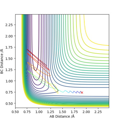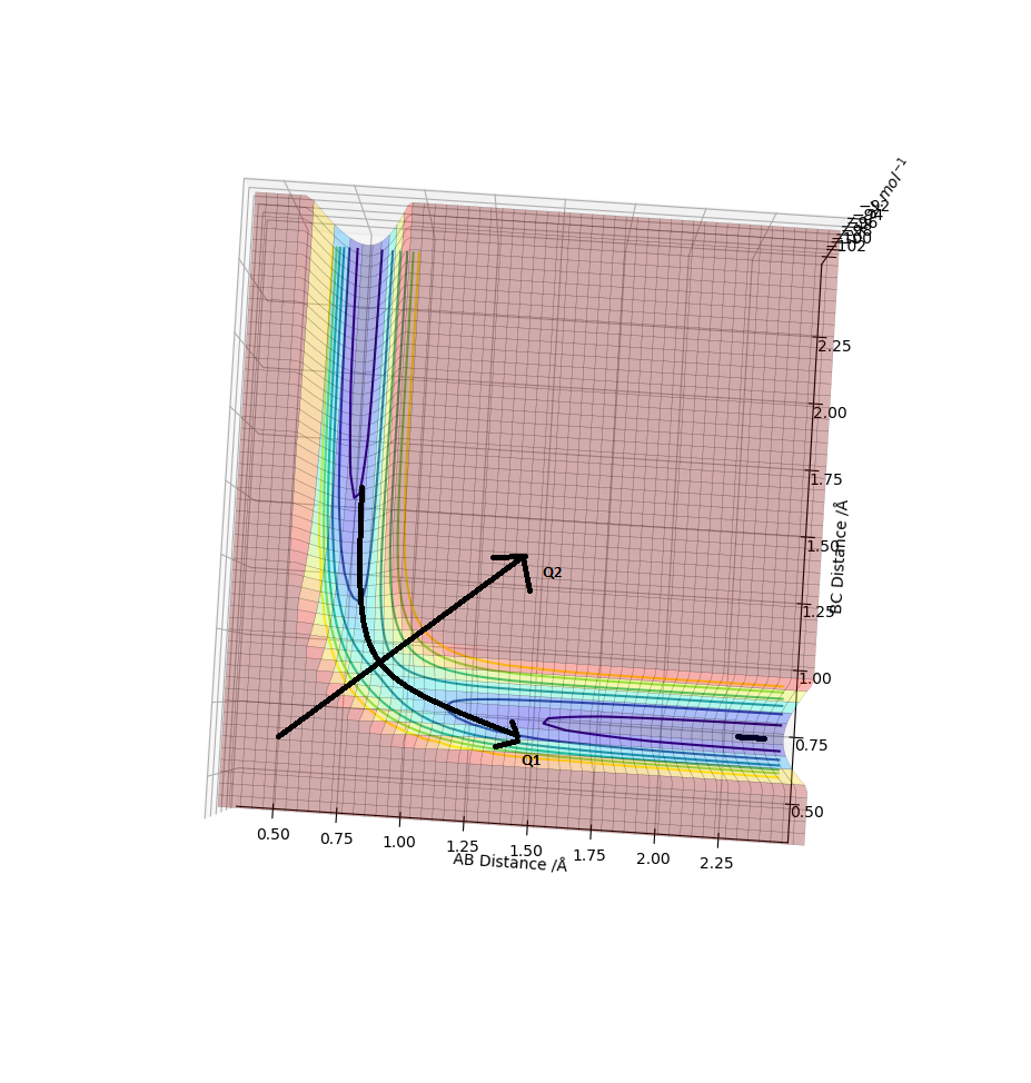 Q3:Calculating the reaction path,comment on how the mep and the trajectory you just calculated differ.