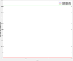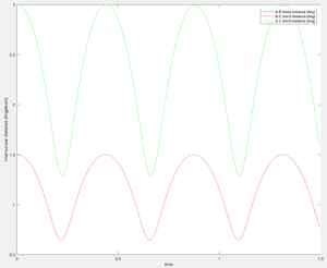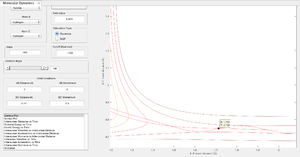 The best estimate of the transition state position rts is found to be equal to 0.90775 Å. The detection of the transition structure can be observed in an internuclear distances vs time plot. The transition state corresponds to where the gradient of the potential energy surface is zero, so it is expected that at rts the H atoms will be stationary - their internuclear separations will remain constant over time (fig 1). At a distance of 0.90775 Å the trajectory disappears (fig 2) confirming this to be a good approximation of the transition state position. Varying the interatomic distance away from the transition state position results in a trajectory that rolls back toward the reactants/products and thus a changing internuclear distance over time is observed (fig 3). Really? That's not what figure 3 is showing. Je714 (talk) 17:37, 31 May 2017 (BST)
