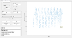 The amplitude of the oscillating trajectory reflects the magnitude of the defined initial momenta values. The reactants produce an oscillation of smaller amplitude than the products as p1 (H-H) < p2 (F-H). The trajectories before and after the transition state however differ by the period of the generated oscillations - this indicates differences in the translational kinetic energy in the reactants and products. It has been discussed previously that the molecular product H-F has a stronger bond than H-H so it is expected to ‘see’ a greater translational kinetic energy in the products than the reactants. This is displayed by the trajectory, the oscillation period for the product H-F (A-B) is larger than that of the reactant H-H (B-C). As a result of the conservation of energy, the total energy of the system must remain constant [11]. Therefore the product state should have a lower potential energy than the reactants to balance the total energy (kinetic and potential) of the system so that it remains constant, suggesting the reaction to be exothermic - earlier concluded to be the case as for the reaction for F + H2. This could be confirmed by different spectroscopic methods such as calorimetry and IR/Raman spectroscopy.