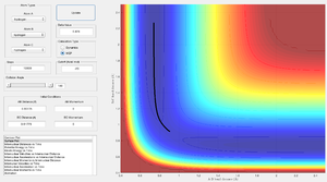 The first set of conditions generates a linear trajectory path from HA-HB HC to the transition structure at approximately 0.908 Å. Before the collision r1 remains constant and r2 steadily decreases as H3 approaches H2. There is sufficient energy to overcome the activation energy barrier allowing the trajectory to roll towards the products. After the transition structure r1 steadily increases as HA moves away from HB from the molecule formed HB-HC, the oscillating trajectory signifies the vibrational energy of the HB-HC bond.