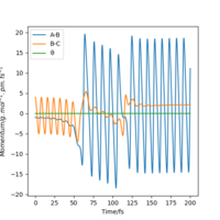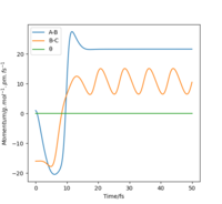 Distance r1 /pm (BC) | Distance r2 /pm (AB) | Momentum p1 / g mol-1 pm fs-1 (BC) | Momentum p2 / g mol-1 pm fs-1 (AB) |