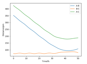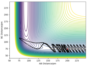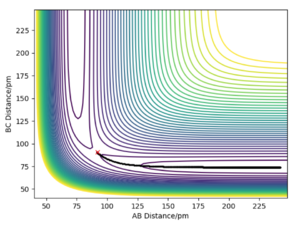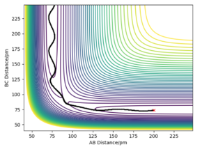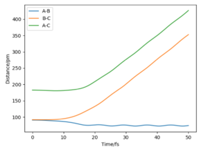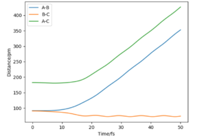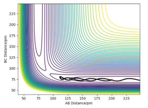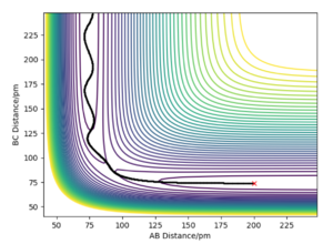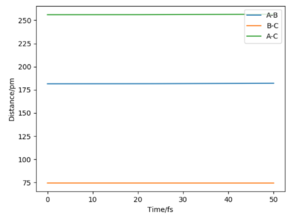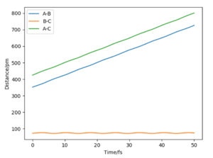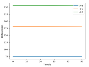 BC r1 bond distance /pm | AB r2 bond distance /pm | p1=p2 momentum /g.mol-1.pm.fs-1 | Etot /kJ.mol-1 |