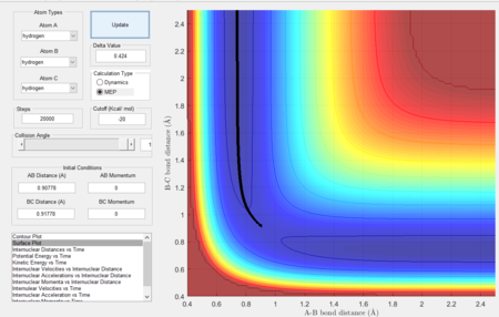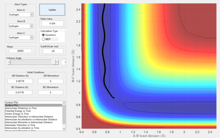 In this section, we shall consider the molecular reaction dynamics of a system of three H atoms. The initial conditions (which determine the trajectory and hence the dynamics of the reaction) in Figure 1 were used.