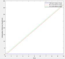 As shown in Figure 2, the internuclear distances change over time. Figure 4 shows the change of internuclear distances.
