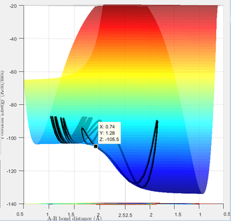 The reaction between an H2 molecule and an H atom is discussed below through the use of plots obtained from MATLAB.